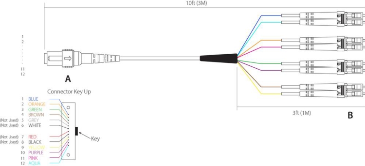 MPO Female to 4 LC/UPC Duplex OM3 Cable 10Mt for 40G |